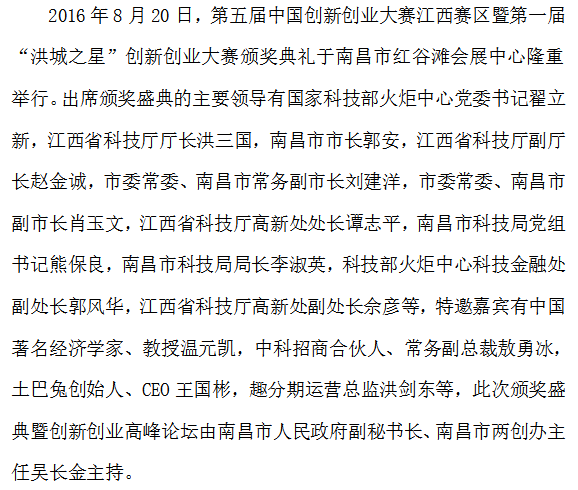 首页 > 公司荣获第五届中国创新创业大赛江西赛区暨首届“洪城之星”创新创业大赛二等奖