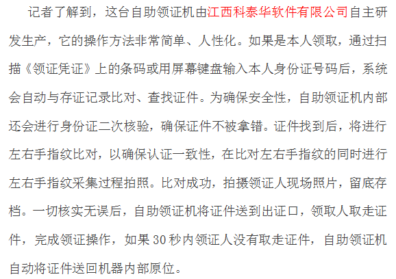 身份证自助领证机亮相南京们 30多秒可领取身份证